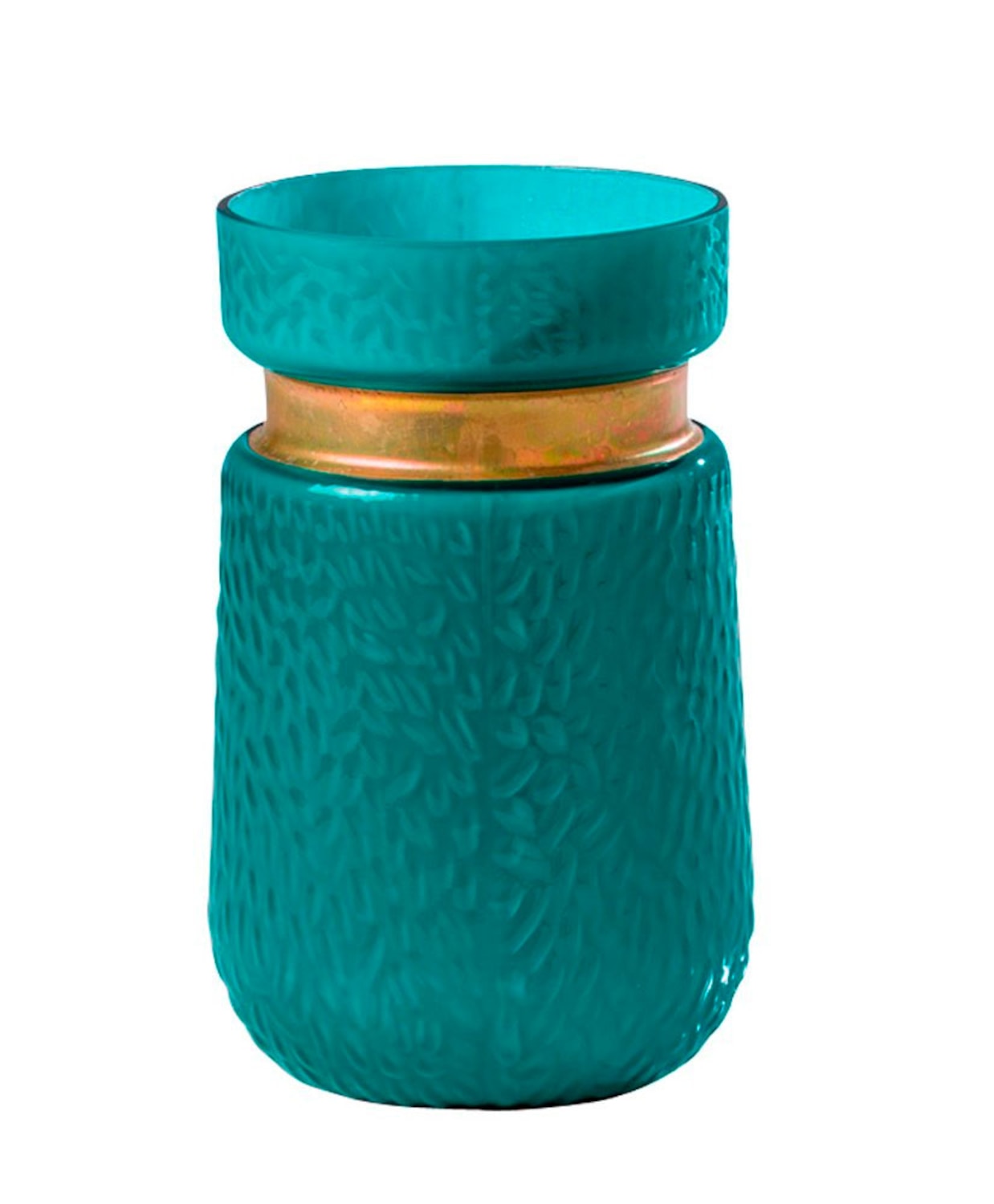 This gorgeous glass vessel is not only the perfect home for a bouquet of fresh or faux flowers, but even when not filled with beautiful blooms, it is a stunning decorative item to grace any room in your home with. Featuring a gold-finish metal collar and a striking teal colour, this piece will look great in your home this fall. Short Metal Collar Vase, Teal, Indigo, $35.