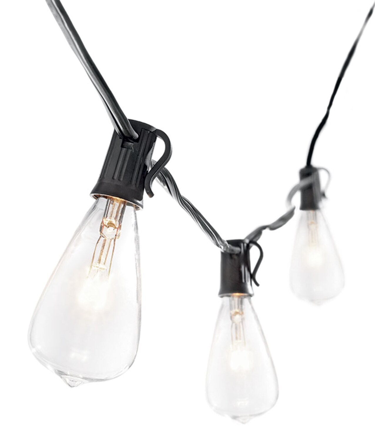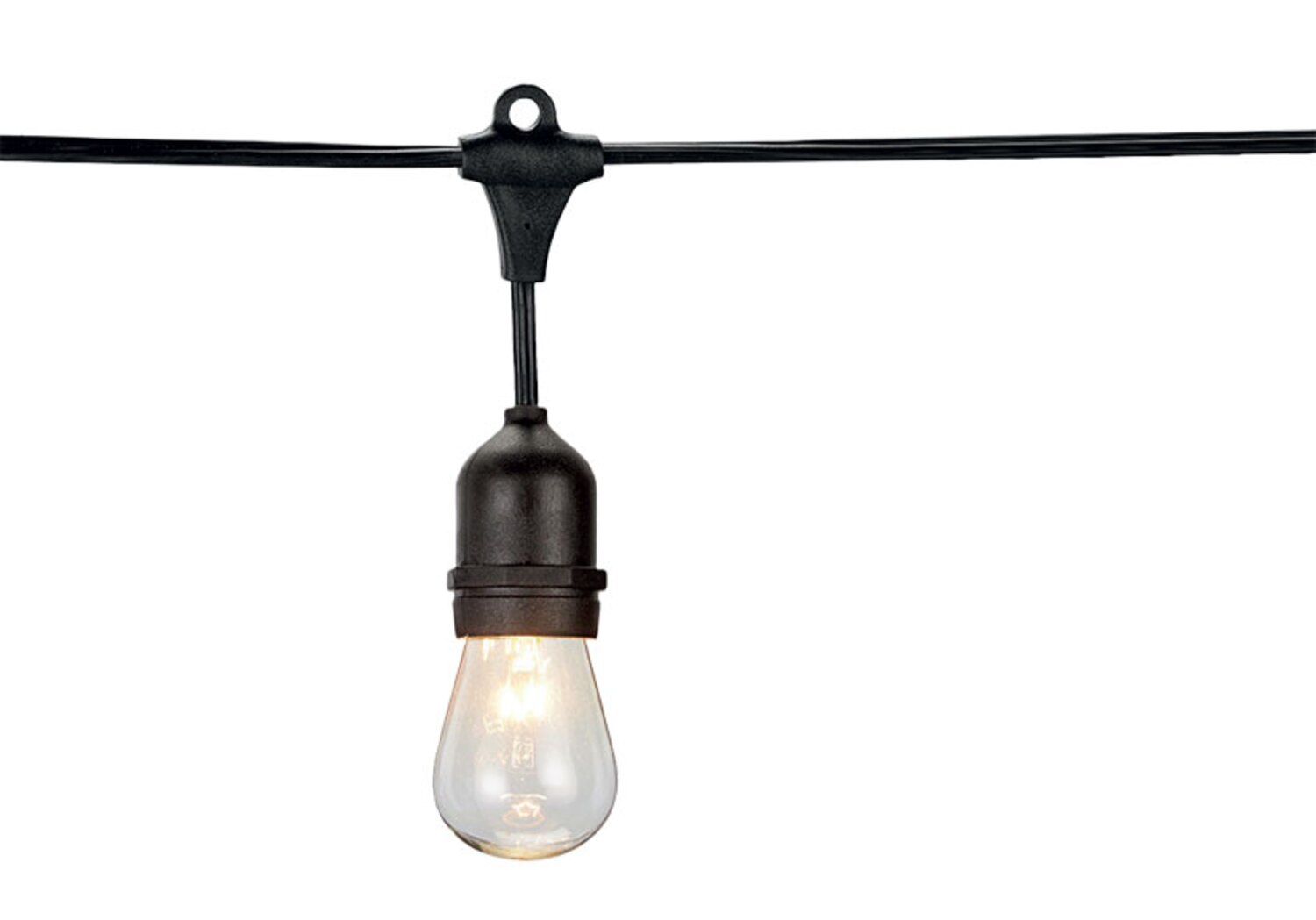 1 Ambient lighting: To keep the party going beyond sunset, simply hang strings of lights along the fence and among tree branches. Make sure to also include lights above your entertaining zones (lounging and eating areas, for example) to create an intimate atmosphere. We recommend café-style string lights with elegant rounded bulbs that give off a warm glow and lend a casual bistro vibe. As for running cords throughout the yard, be strategic: Choose strands that can plug into one another so only one extension cord is needed; don’t run the cord across high-traffic areas (tuck it along the fence line instead); and select a cord that coordinates with your surroundings (white to match your trim, for example).