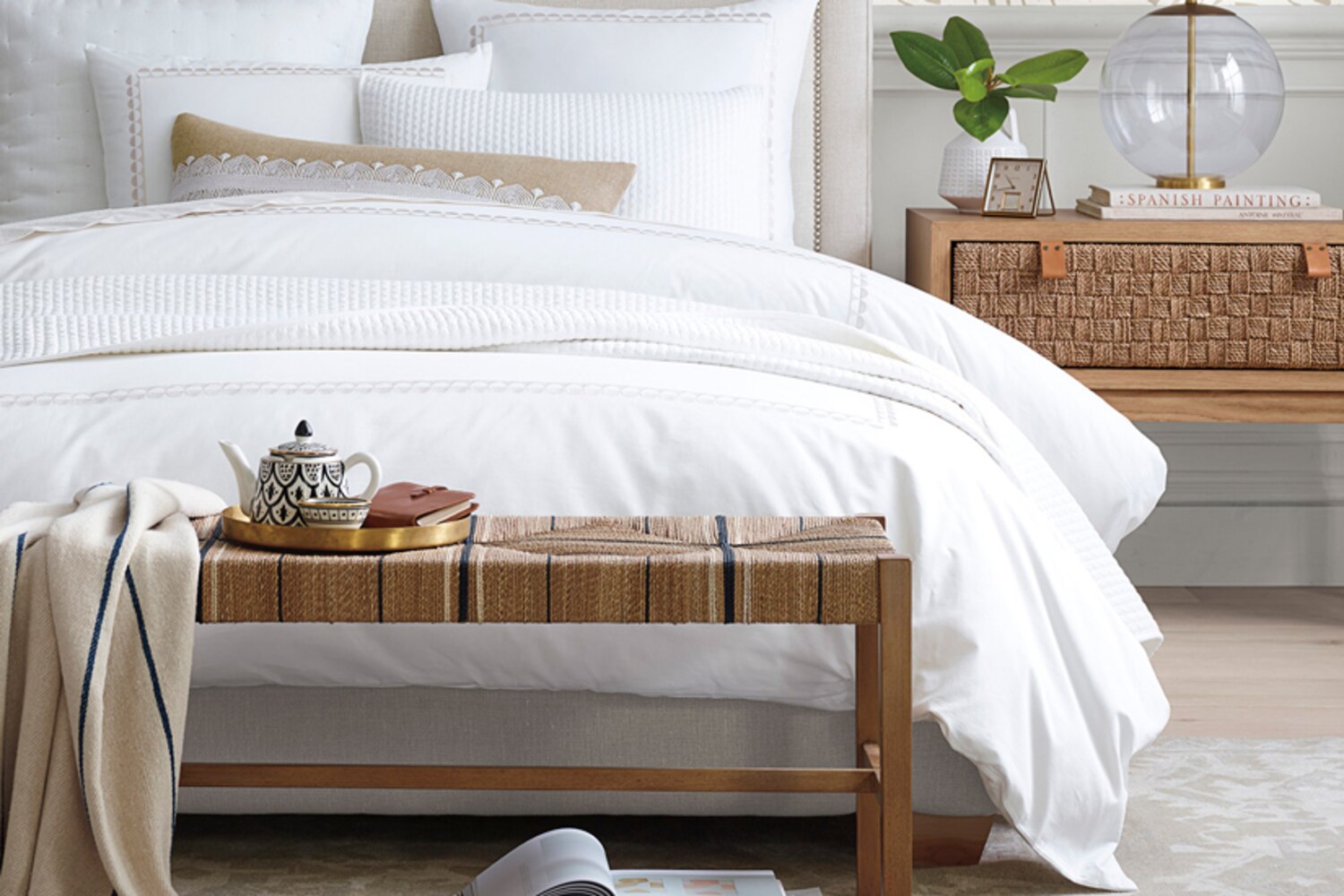 If you have the space, incorporate seating at the foot of your bed — this practical touch will pull the room together. Inspired by the stool pairings in our High and Low sets, these cord-seat benches are sure to lend cozy texture. Whether hand woven or mass-produced from natural fibre or paper, there are options for every budget.