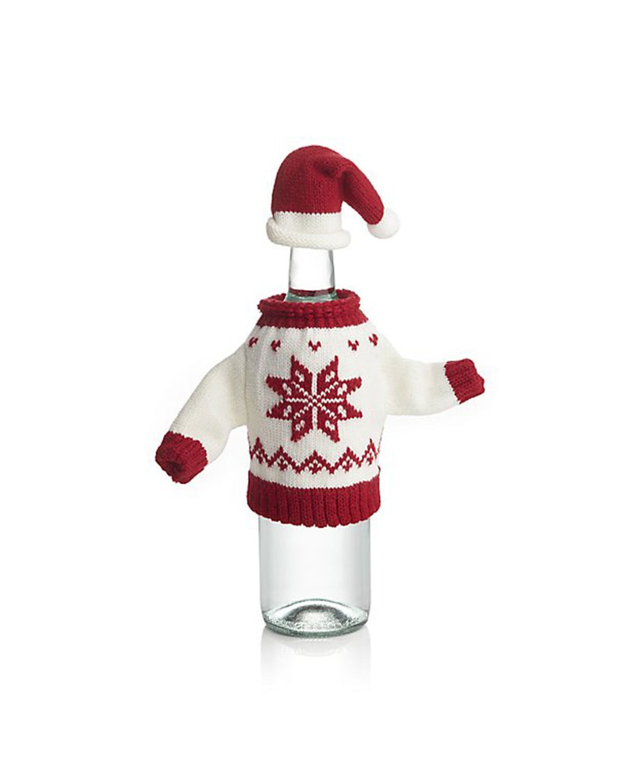 Get creative and wrap this year's holiday hostess gift in a cute festive sweater and hat. Wine bottle sweater and hat, Crate & Barrel, $8.95.