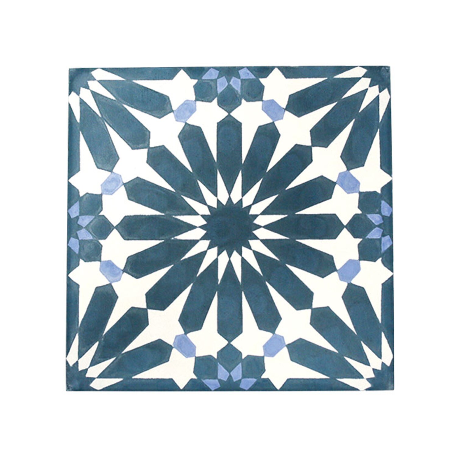 Encaustic cement Alhambra tile in Federal Blue, Nautical Blue and White, 8", Clé, $16 US per square foot.