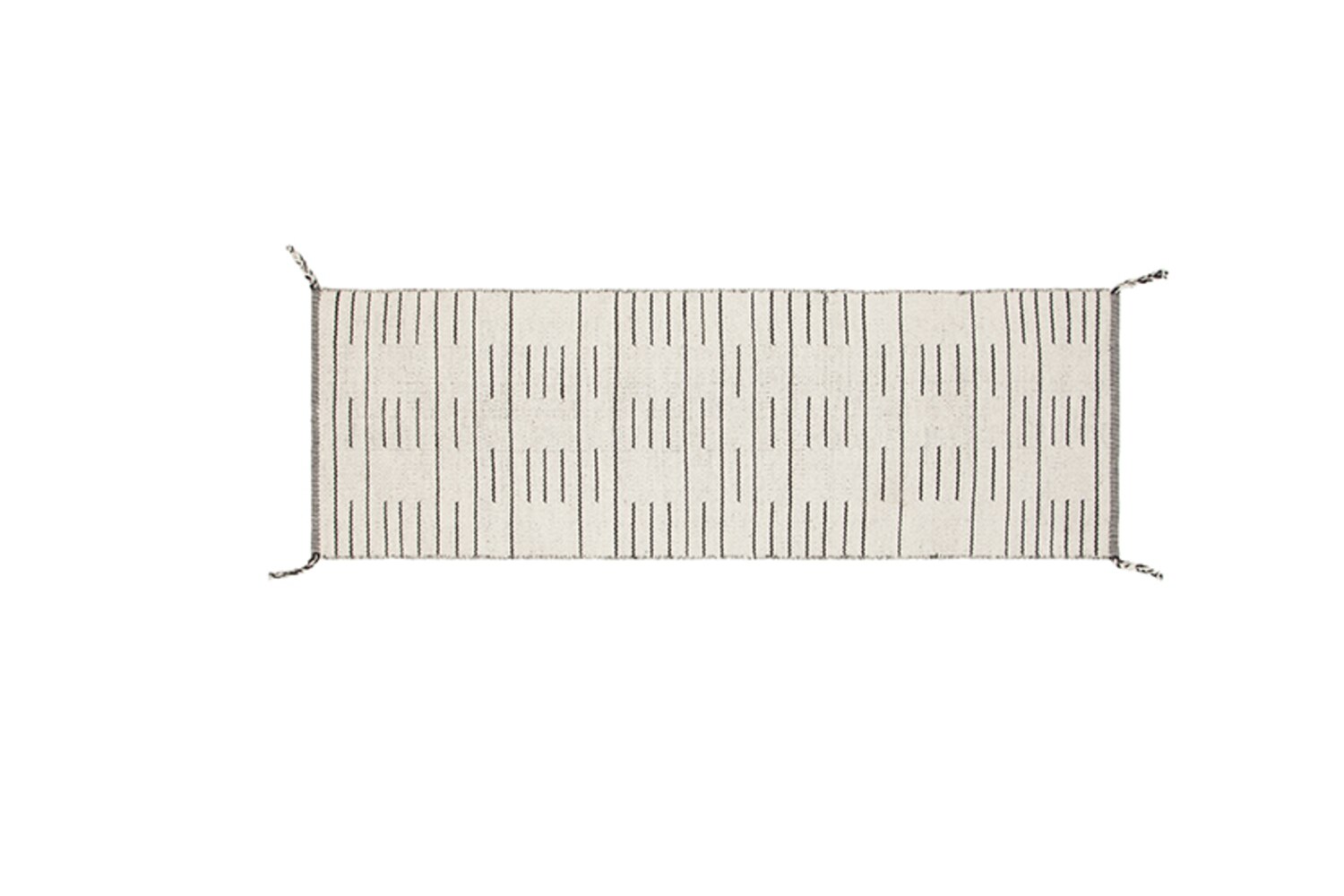 The wall behind the bed is clad in fabric panelling with brass studs that create the look of a headboard without taking up extra square footage. Designer Ali Budd also saved surface space on the top of the nightstands by using wall sconces instead of table lamps. The nightstands’ drawers, as well as the wall treatment and patterned rug, add geometric interest.