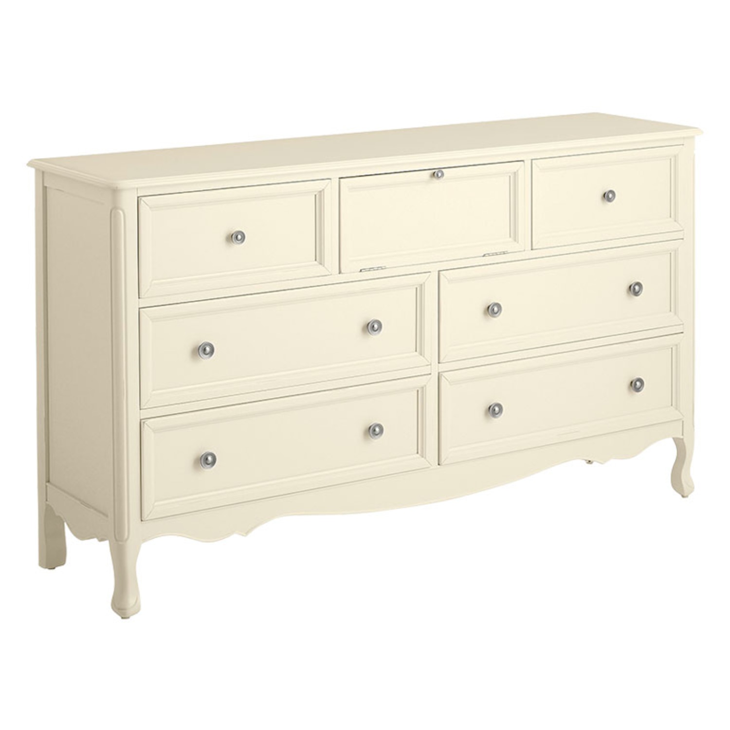 “This dresser almost got kicked to the curb,” says Margie. “I’ve had it forever and was thinking of buying something more contemporary, but it totally suited the room, so I reinvented it with a coat of paint and some new hardware.”