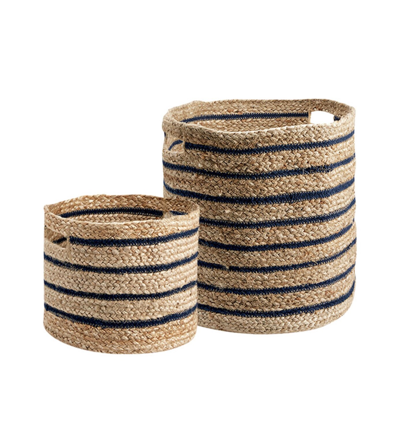 Jute Raffia baskets in navy stripe, Pottery Barn Kids, from $49 US each.
