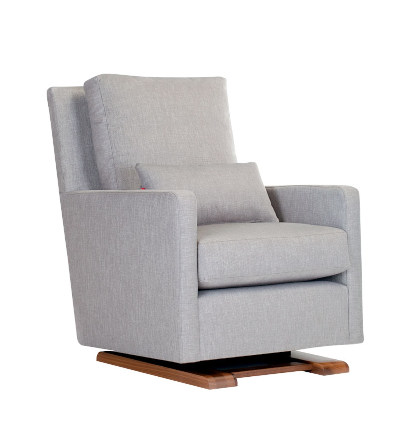 Monte microfibre Como glider in Pebble Grey with walnut base, West Coast Kids, $1,395.