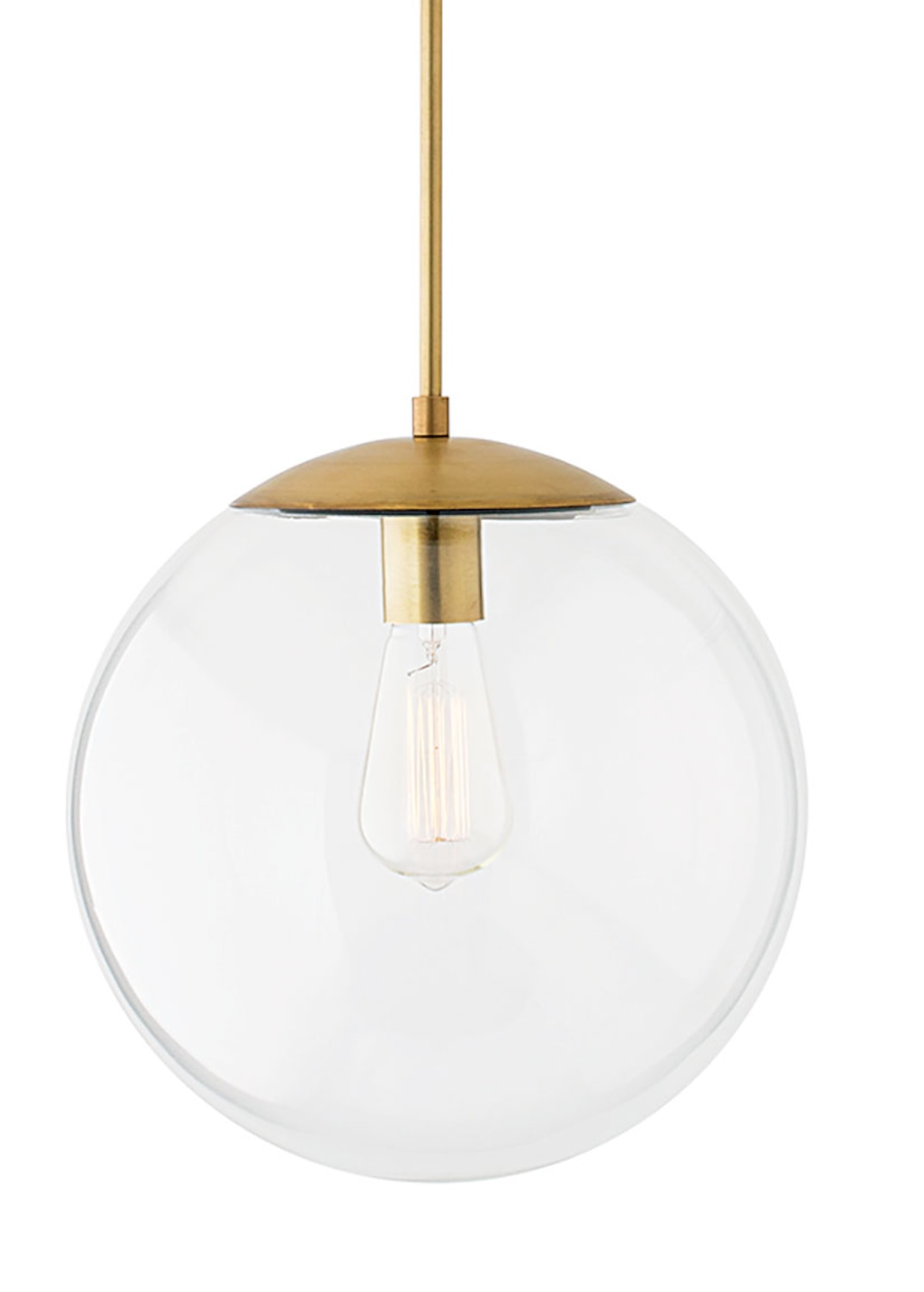 A banquette serves as part of the casual eat-in area for the couple and their children, Sadie, 6, and Spencer, 2. It features storage in the form of legal-sized filing cabinets, with flush brass pulls that don’t get in the way of dangling feet. Finding a table that fit the space proved challenging, so homeowner Mike Shannon built the base himself and had a piece of glass cut for the top. The Eames chairs are a classic pick, and the chandelier provides sparkle and blends in with all the brass.
