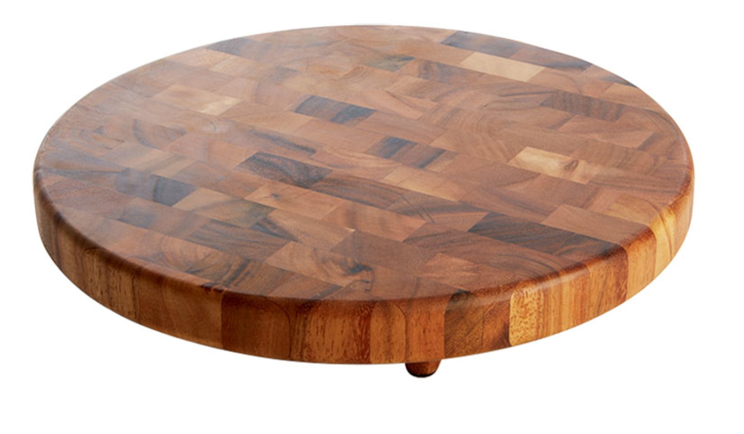 Footed round end-grain acacia wood cutting board, $70 Crate and Barrel.