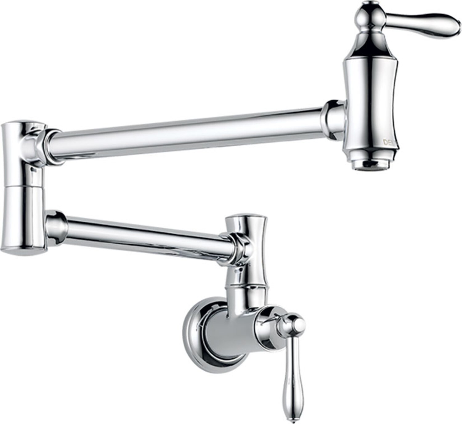 Brass traditional wall-mount pot filler in Chrome, $513, Delta Faucet.