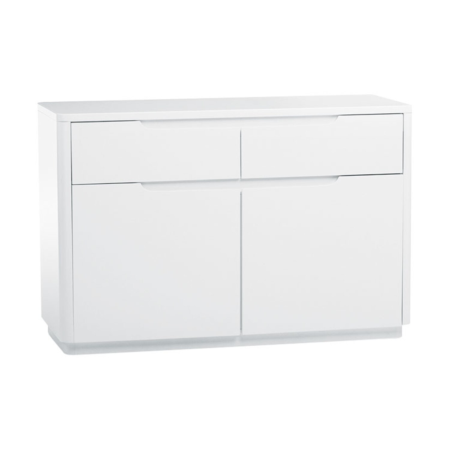 An all-white palette, glass backsplash, traditional architecture and contemporary furnishings create a chic cuisine.