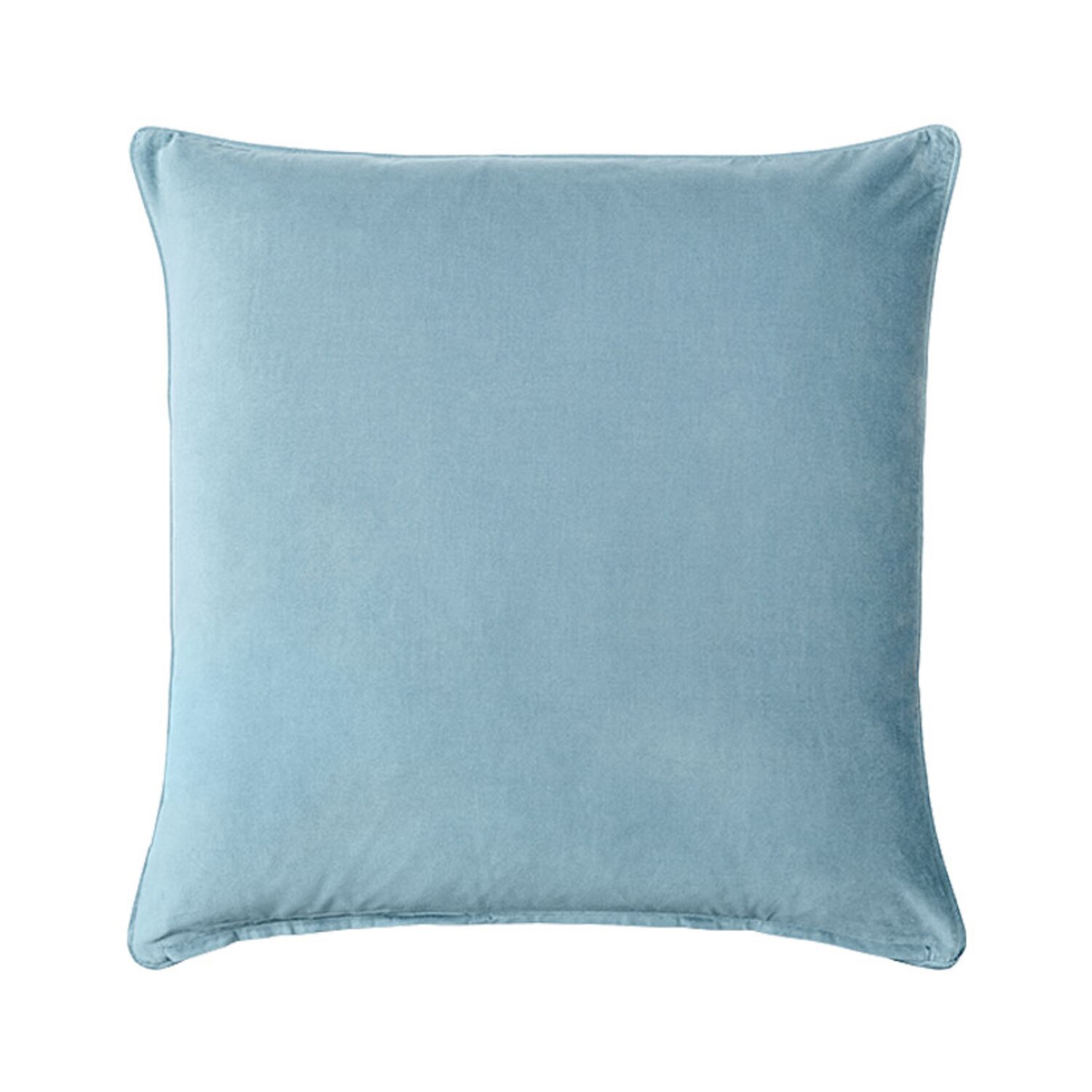 A subdued palette of pale hues, including blush and powder blue, defines the room. To stimulate the eye without overpowering the space, Ali introduced a few bold black accents, including the abstract artwork.