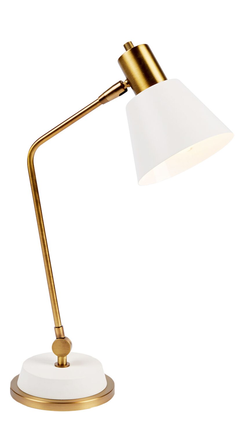 Steel and brass Cylinder Task desk lamp in Antique Brass & White, Rejuvenation, $179 US.
