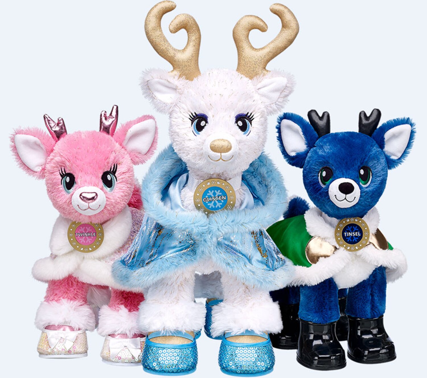 Build-A-Bear Workshop's newest reindeer collection means from start to finish your children can put their own unique spin on creating the seasonal stuffed toy of their dreams. Glisten, Twinkle and Tinsel Reindeer, Build-A-Bear Workshop, prices vary.