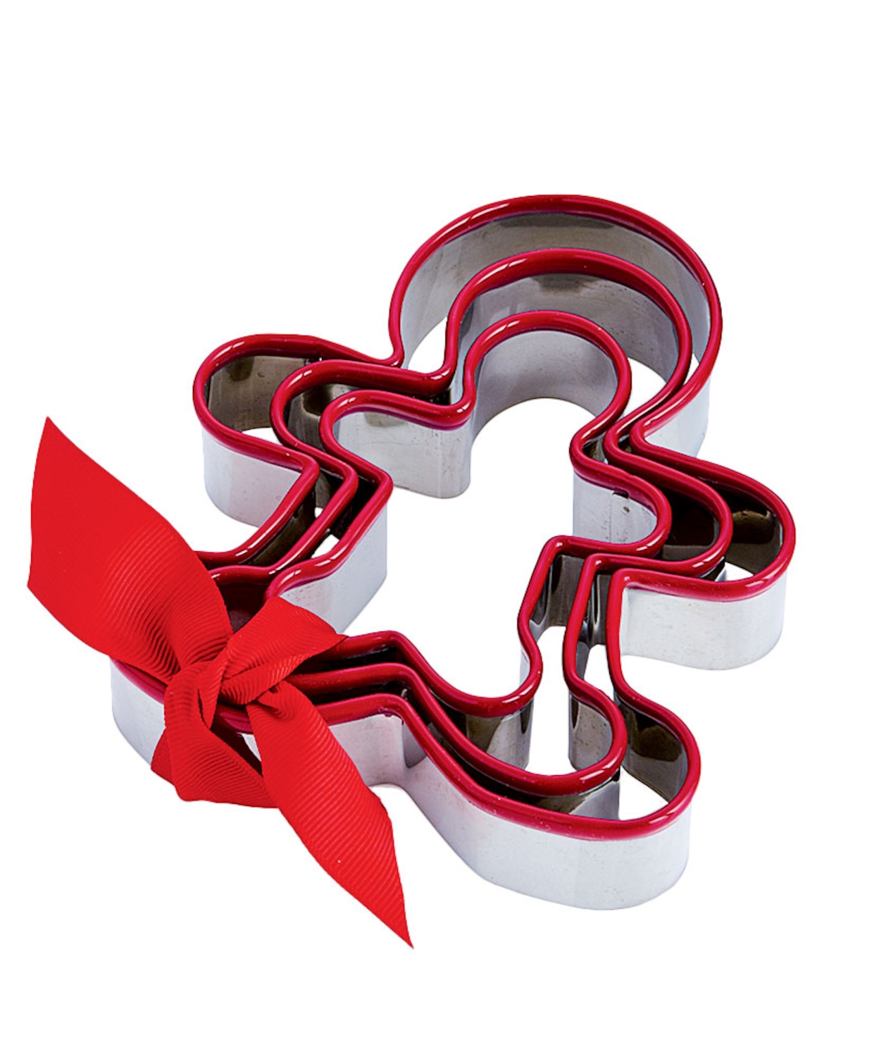 Red Grip Gingerbread man cookie cutters, Crate and Barrel, $10 per 3-piece set.