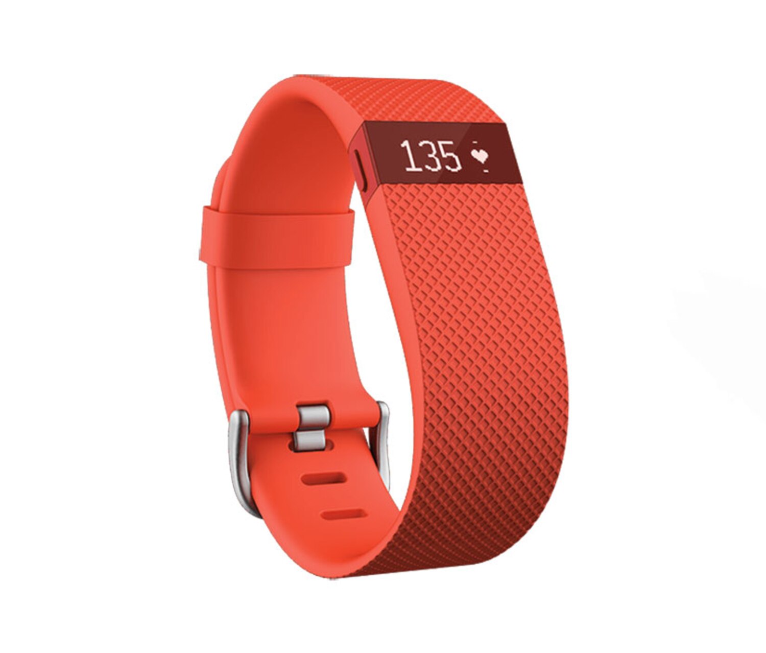 Charge HR fitness tracker in Tangerine, Fitbit, $150 US.